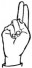 На ћирилици написано ДАВИД КОЈОВИЋ састоји се из 12 слова [?]. Исписано ћириличном једноручном азбуком за глувонеме: